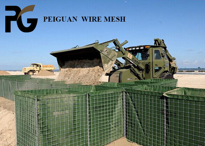 Dinding Penghalang Baja Militer untuk Konstruksi Lapangan Tembak adalah salah satu keranjang bronjong las modern yang dapat diisi dengan pasir, tanah, kerikil, kerikil, puing, batu bata, bahkan sedimen halus, dll. banyak digunakan untuk tahan ledakan terhadap serangan dari peluru senapan, pecahan peluru, peluru granat berpeluncur roket, terutama digunakan di Afghanistan, Suriah, Irak, Iran, Yordania, dll. Juga digunakan untuk pengendalian banjir di kota-kota, jadi nama lain adalah penghalang pengendalian banjir.
